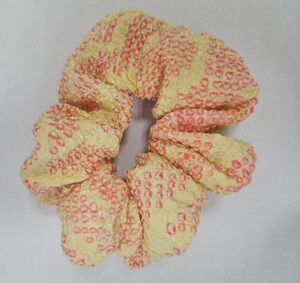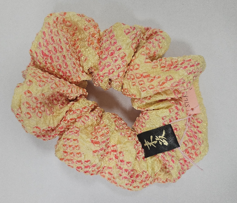 シュシュ しぼりシュシュ 絞り(黄色薄赤)
