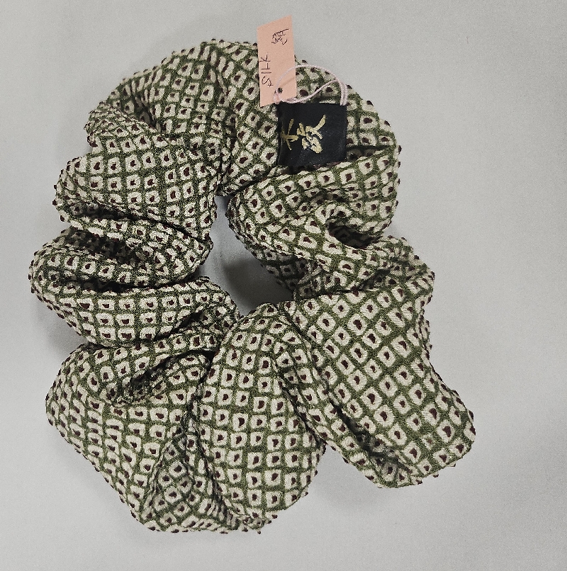 シルク素材の絞りシュシュ