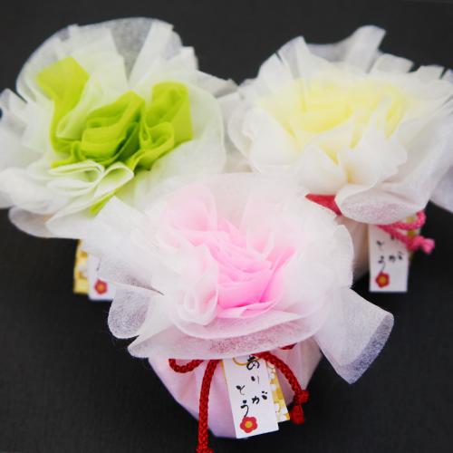 おひなさまを思わせる丸くころんとした形のかわいいプチギフトです。