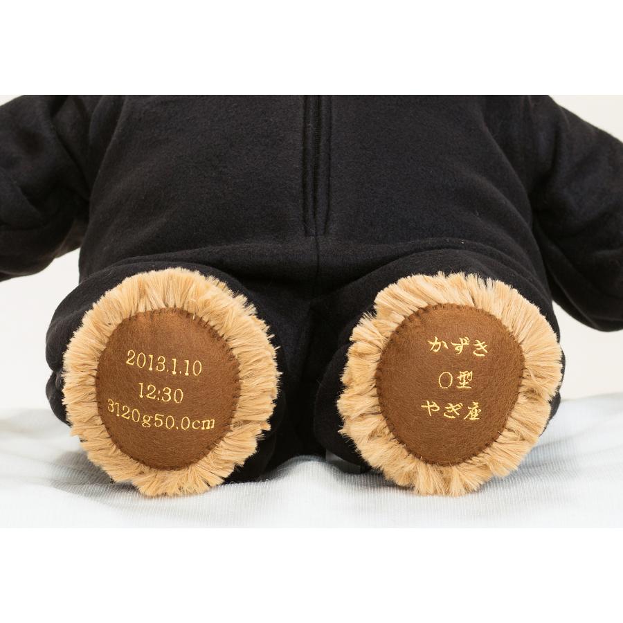 生まれた時の重さ1g単位で作るウエイトベアにくまモンの着ぐるみを着せたぬいぐるみです。