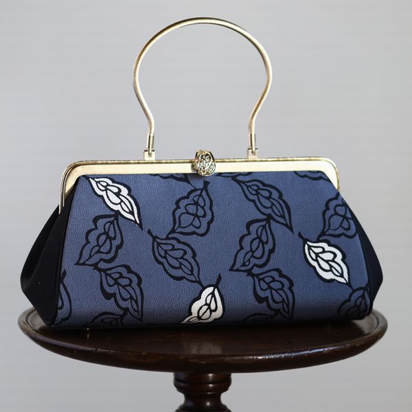 着物リメイク手提げバッグ葉柄