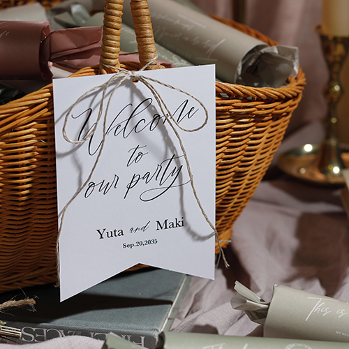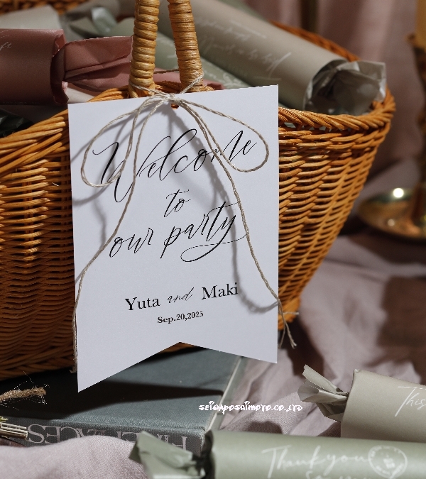 挙式日と新郎新婦様のお名前がローマ字で入ったネームプレート付きです。
