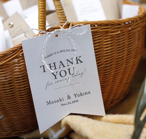 挙式日と新郎新婦様のお名前がローマ字で入ったネームプレート付きです。